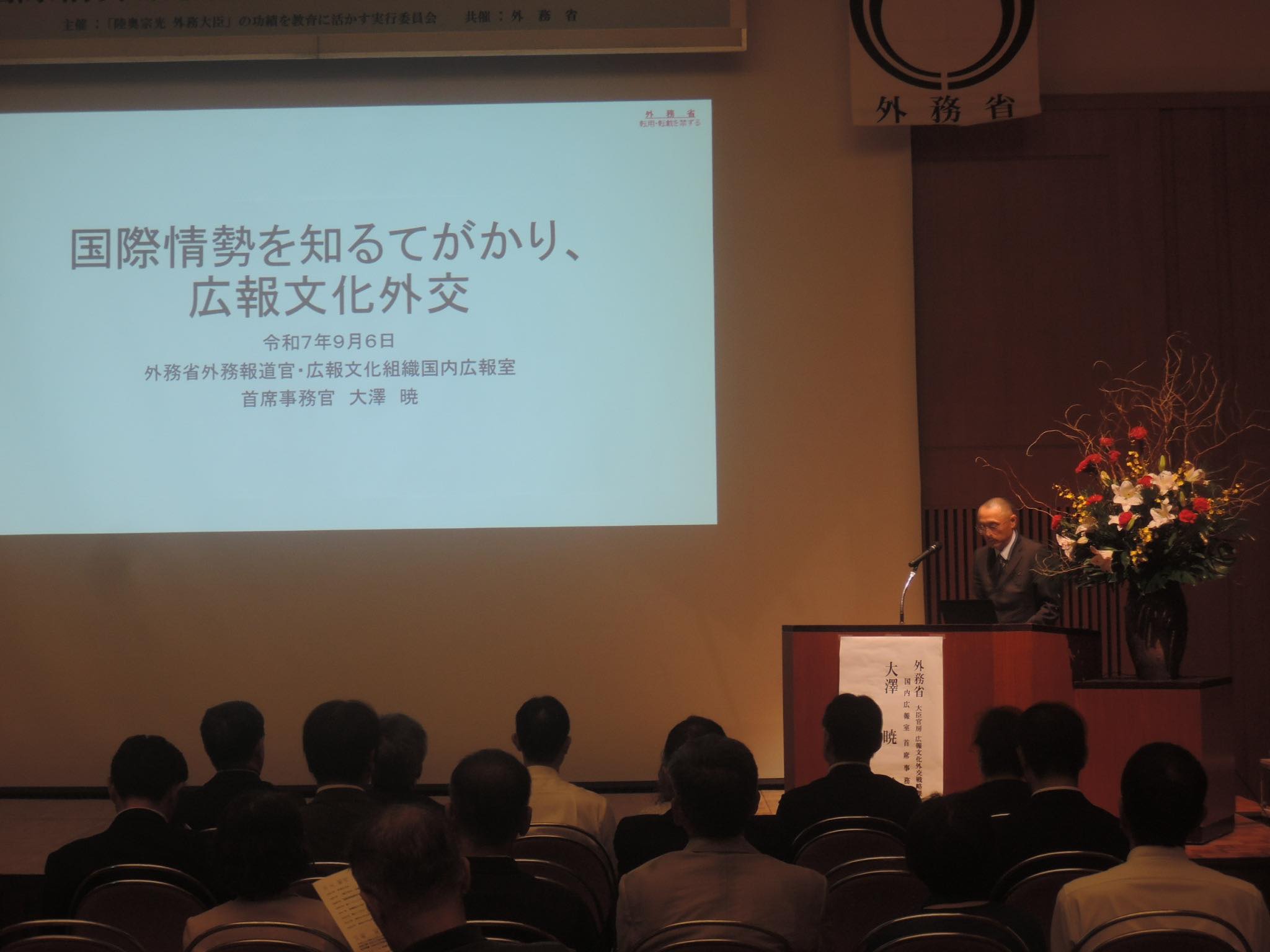 続けて、外務省国内広報室の大沢暁首席事務官様から、「国際情勢を知るてがかり、広報文化外交」というテーマで講演いただきました。